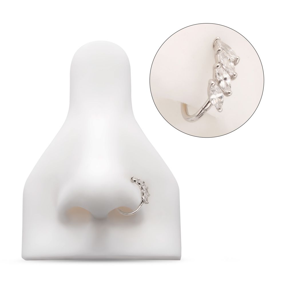14Kt Gold 4 Marquise Staggered Cluster Prong Gem Side Facing Hinged Segment Clicker