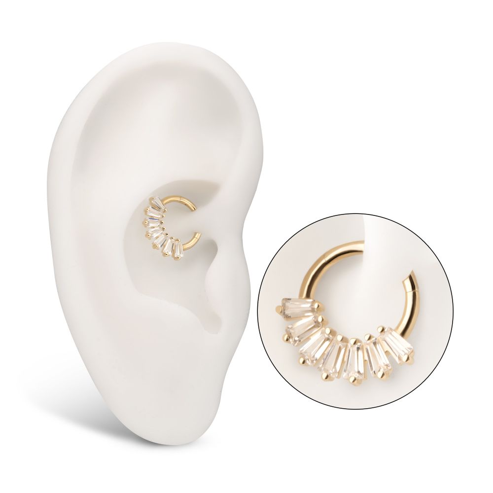 ? Shimmer in style witH₂O₂r new solid 14kt nickel-free gold cubic zirconia hinged segment clickers for effortless elegance!