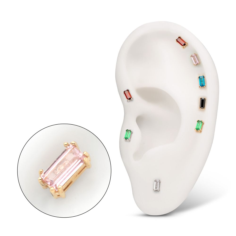 ? Benefits: The emerald cut shape delivers sophisticated sparkle, timeless appeal, and versatile wear across multiple piercing styles for either delicate or bold looks.
