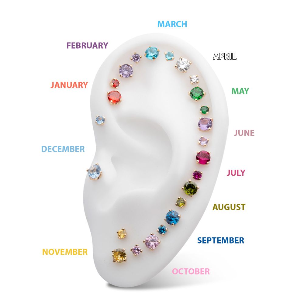 14Kt Gold Threadless with Prong Set Birthstone Tops is made of solid 14kt nickel-free Gold with durable 316LVM ASTM F-138 Implant Grade Steel Pin designed to be practical and easy to use. Fits all sizes of pins and bases in our threadless body jewelry line. Pin Size: 0.45mm x 4.7mm.