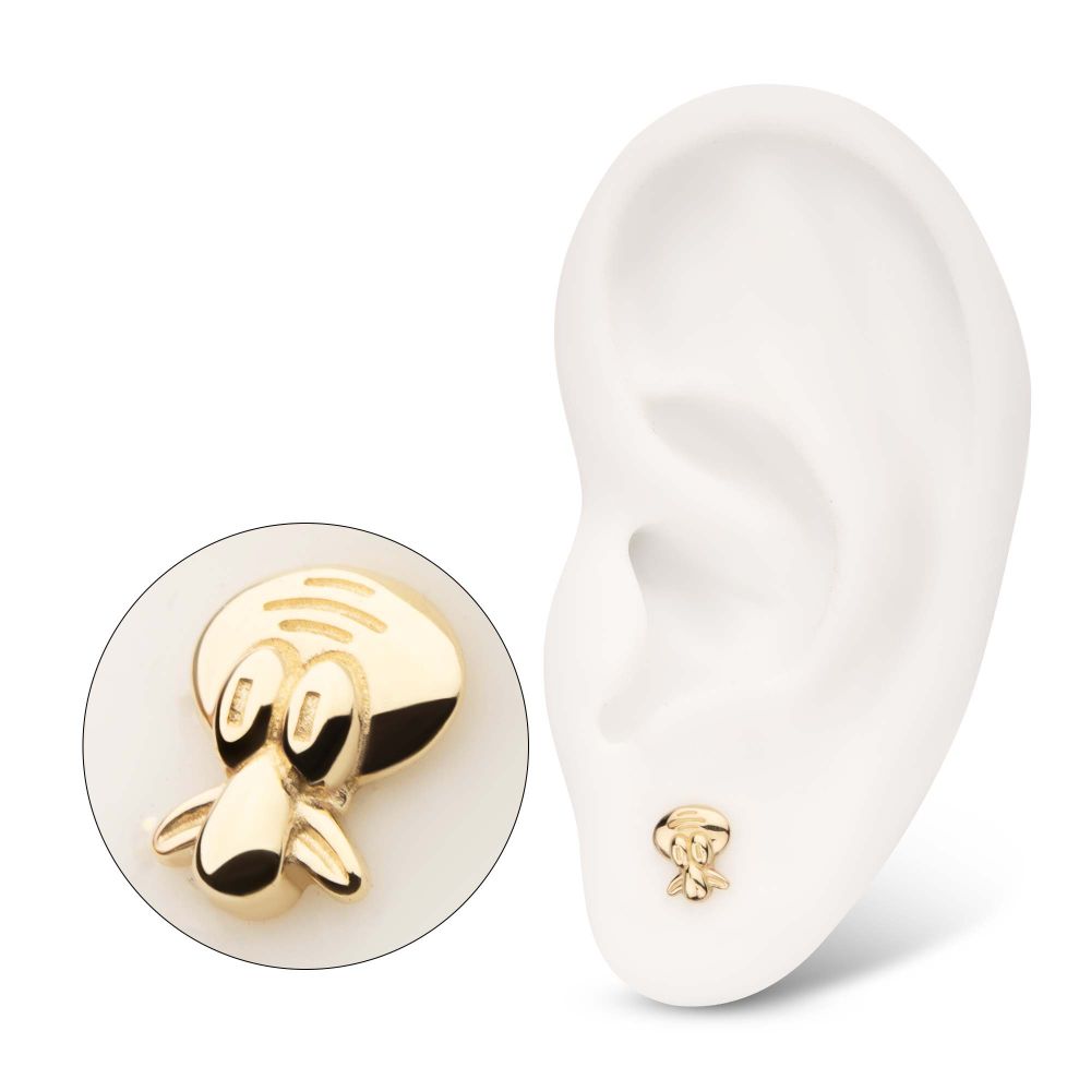 14Kt Yellow Gold Nickelodeon Squidward Tentacles Threadless Top is made of solid 14kt nickel-free Gold with durable 316LVM ASTM F-138 Implant Grade Steel Pin designed to be practical and easy to use. Fits all sizes of pins and bases in our threadless body jewelry line. Pin Gauge: 25g