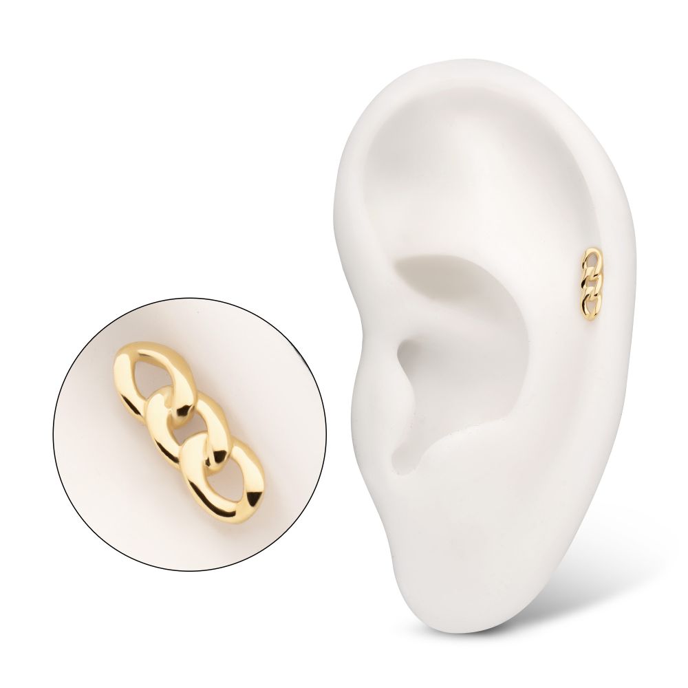14Kt Yellow Gold Threadless 3-Link Chain Top. Made from Solid 14Kt Nickel-Free Gold with durable 316LVM ASTM F-138 Implant Grade Steel. Pin Size: 0.45mm x 4.7mm.