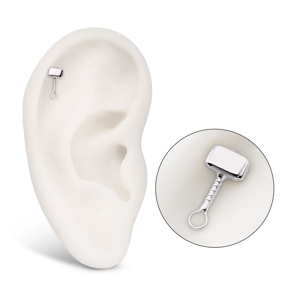 14Kt White Gold Marvel Thor's Hammer Threadless Top