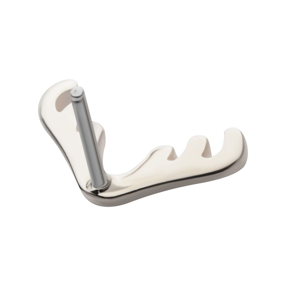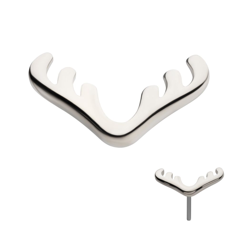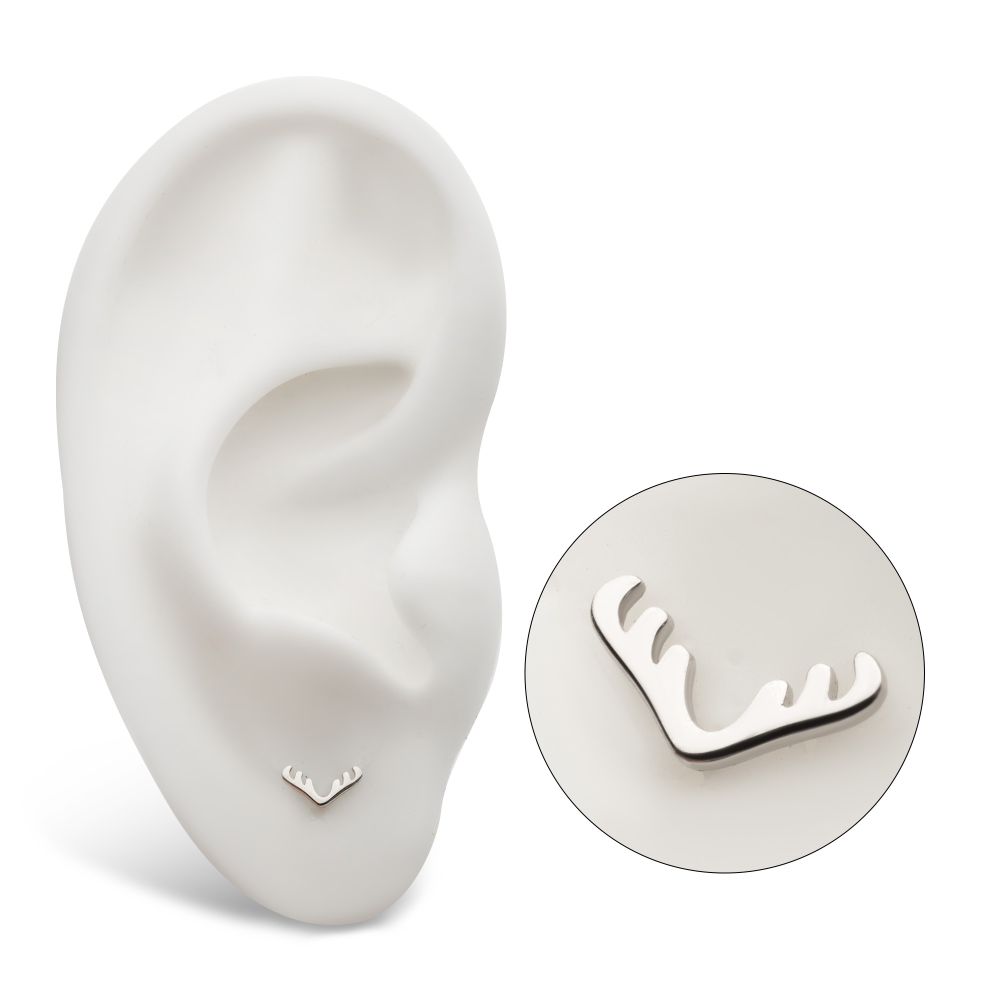 14Kt White Gold Threadless Reindeer Top. Made of solid 14kt nickel-free Gold with durable 316LVM ASTM F-138 Implant Grade Steel Pin designed to be practical and easy to use. Fits all sizes of pins and bases in our threadless body jewelry line. Pin Size: 0.45mm x 4.7mm