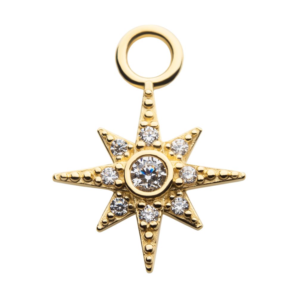 14Kt Yellow Gold 8-Point Star with Round Clear CZ Charm.