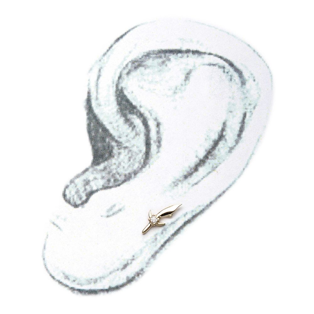 A 1.5mm cubic zirconia adorns the handle of this 14k gold dagger threadless top. The unique piece will stand out among other jewelry, but is also a great solo piece. Compatible with any threadless Invictus bar or base in any gauge. To secure inside bar or base, add a slight bend to the pin by simply inserting the pin halfway and pushing the top to one side.
