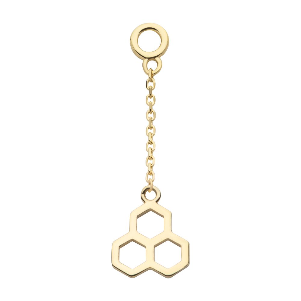 14Kt Yellow Gold Honeycomb Dangle Charm with 10mm Chain.