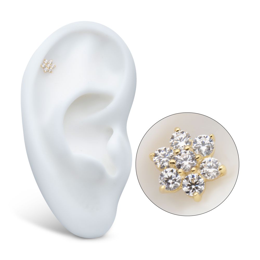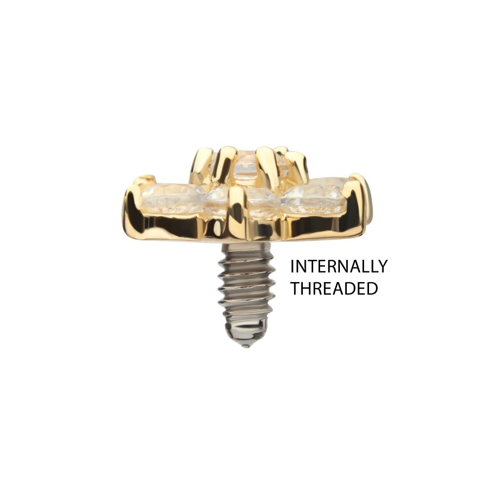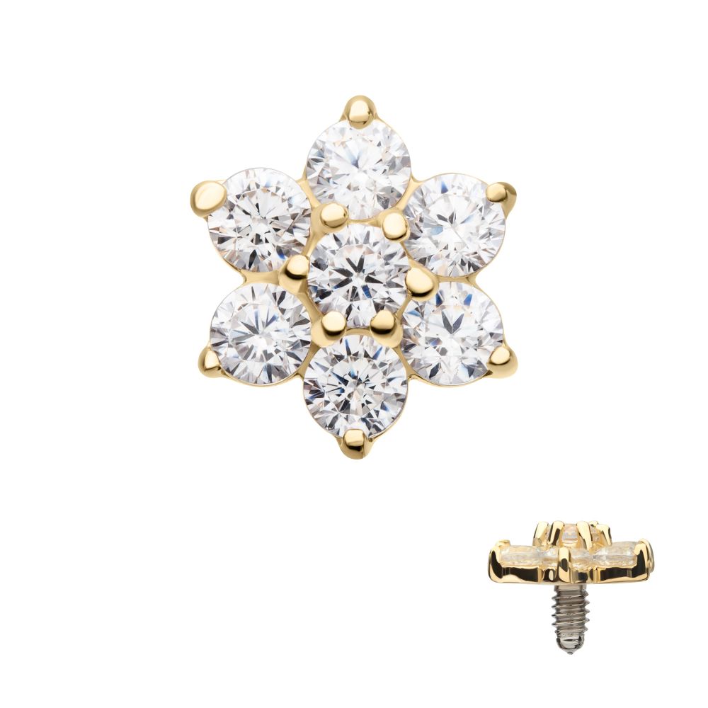 14Kt Yellow Gold Internally Threaded Prong Set 7-Gem Flower Top Dermal
