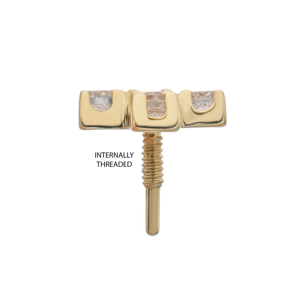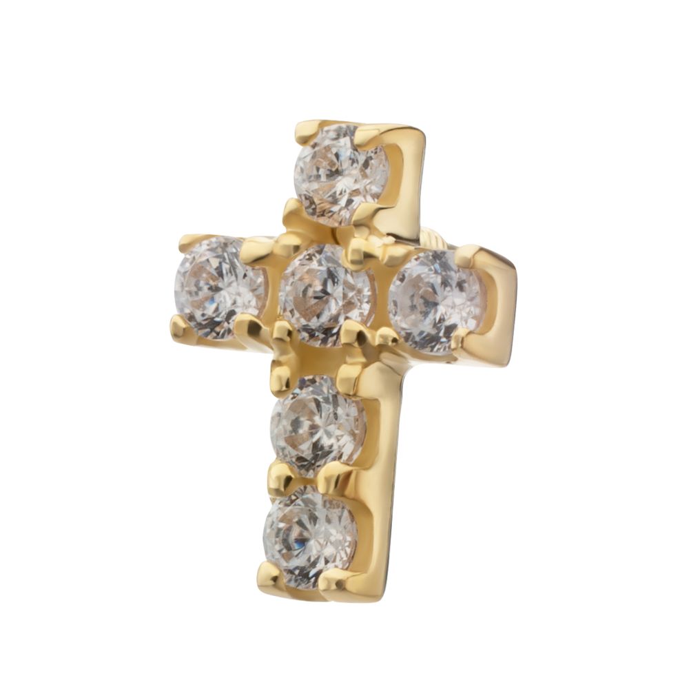 14Kt Yellow Gold M0.8 Internally Threaded Pave Gem Cross Top