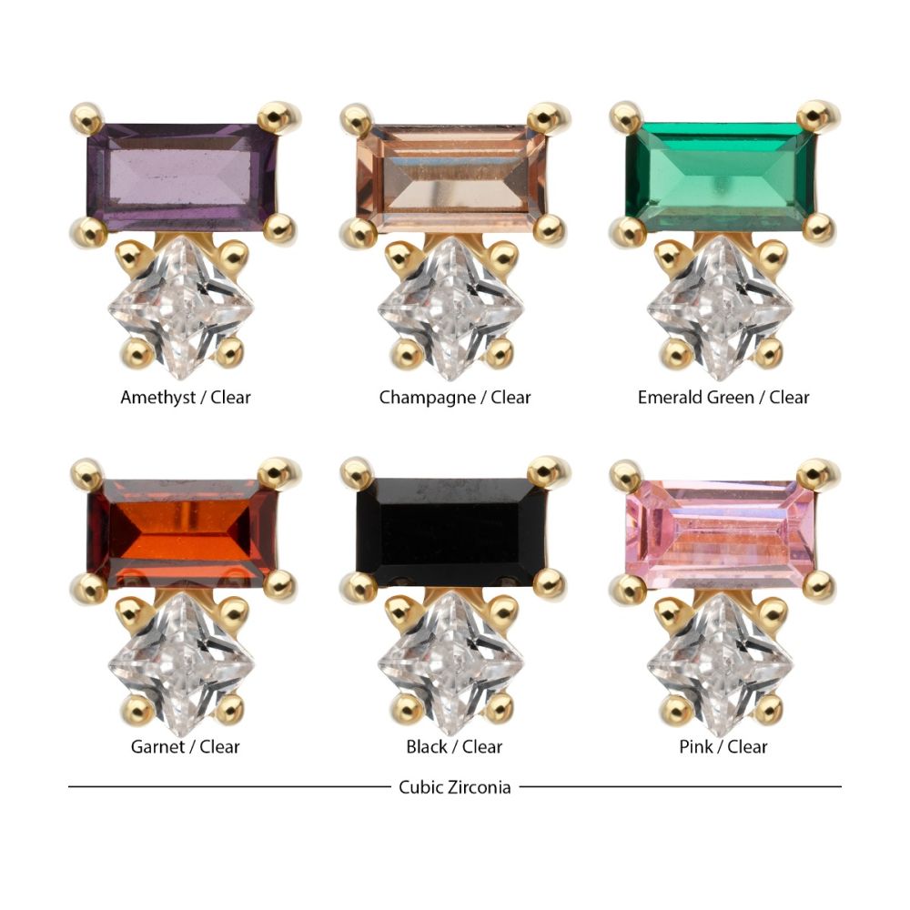 14Kt Yellow Gold Threadless Baguette & Square Prong Set Multi-Gem Top