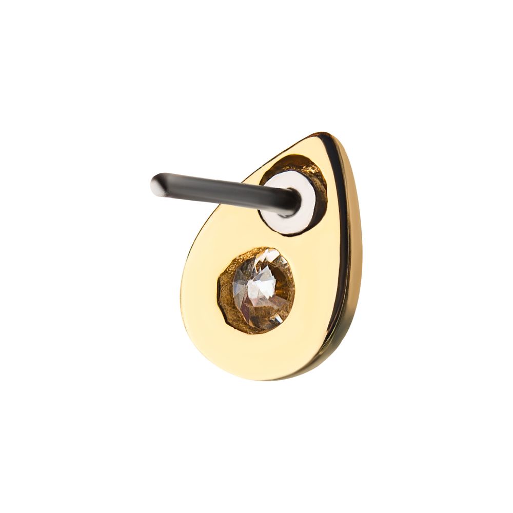 14Kt Yellow Gold Threadless Bezel Set Gem Teardrop Shape Top is made of solid 14kt nickel-free Gold with durable 316LVM ASTM F-138 Implant Grade Steel Pin designed to be practical and easy to use. Fits all sizes of pins and bases in our threadless body jewelry line. Top Size: 4.3mm (L) x 3.05mm (W) x 1.1mm (THK); Pin Size: 0.45mm x 4.7mm.