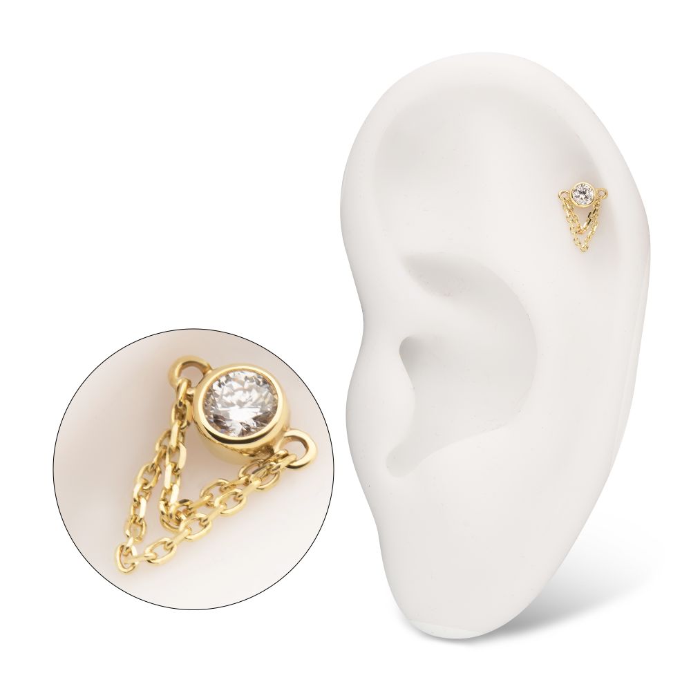 14Kt Yellow Gold Threadless Bezel Set Lab-Grown Diamond Top with 2 Tiered Chain Dangle