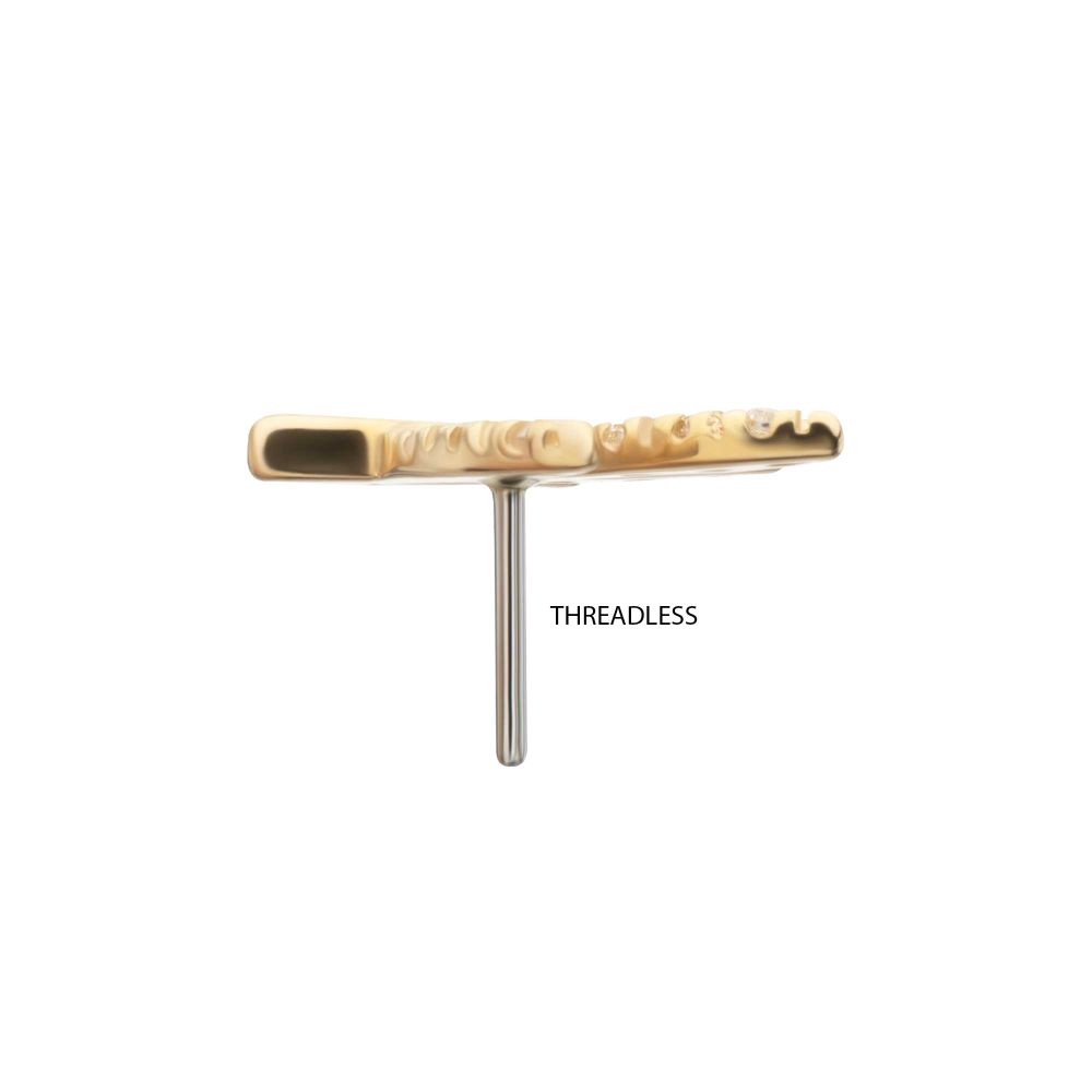 14Kt Yellow Gold Threadless "Golden Flora" Paved Gem Top. Made from Solid 14Kt Nickel-Free Gold with durable 316LVM ASTM F-138 Implant Grade Steel. Pin Size: 0.45mm x 4.7mm.