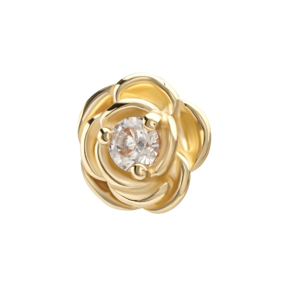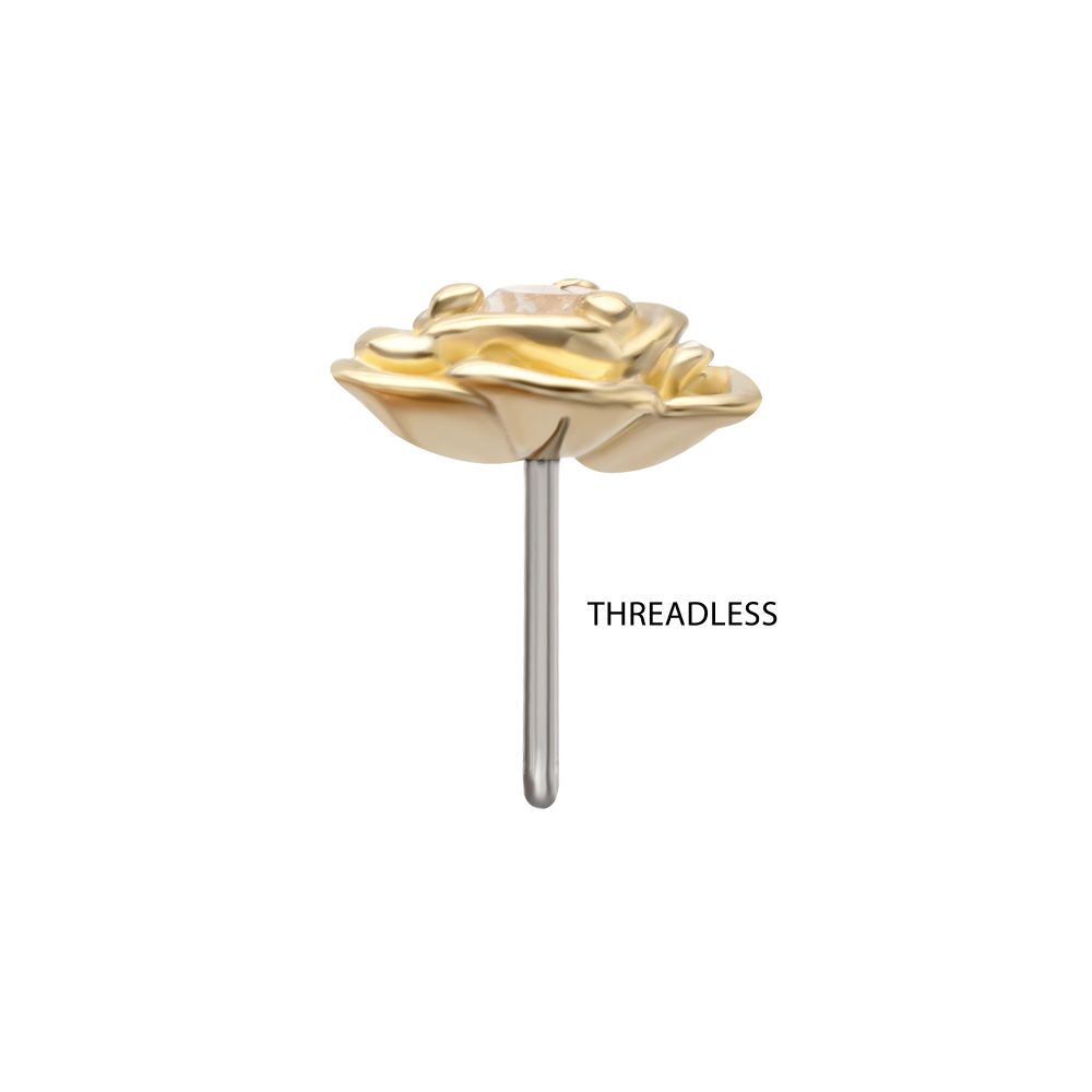 14Kt Yellow Gold Threadless Low Profile 3-Prong Gem "Rosebud Bloom" Top