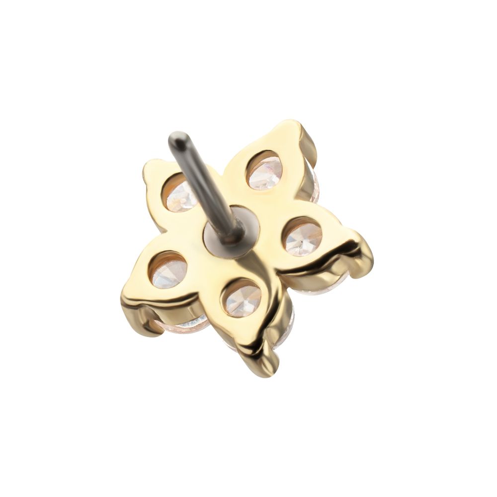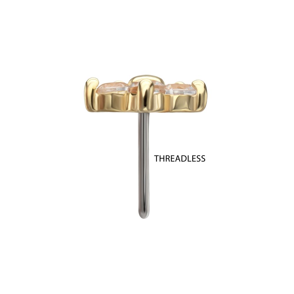 14Kt Yellow Gold Threadless Low Profile 5-Petal Prong Set Gem Flower Top
