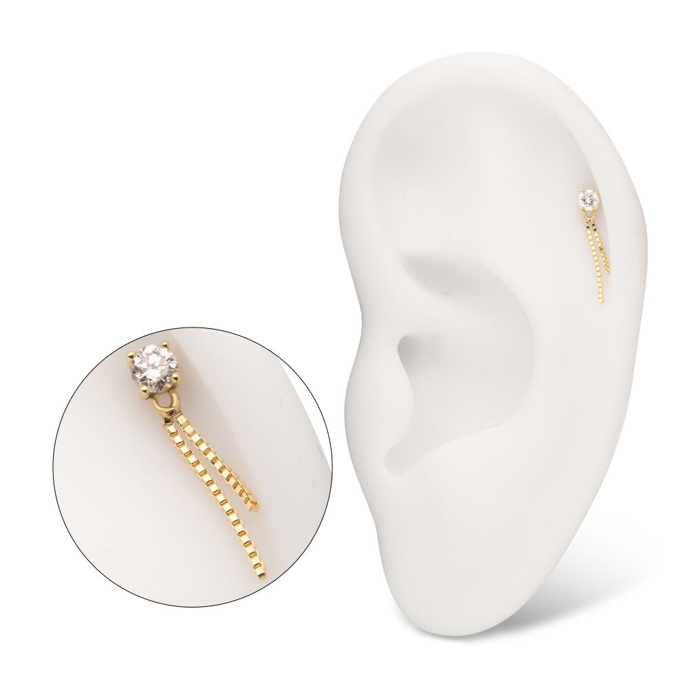14Kt Yellow Gold Threadless Prong Set Lab-Grown Diamond Top with 2 Box Chain Dangle