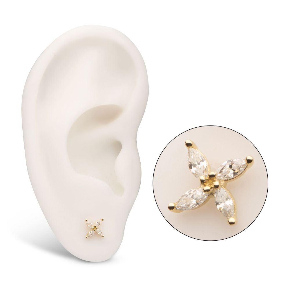 14Kt Yellow Gold Threadless Prong Set Marquise CZ Gem 4-Petal Flower Top