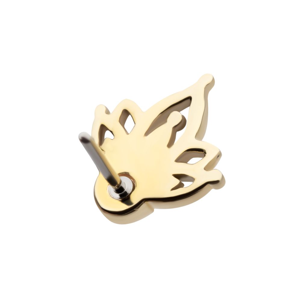 14Kt Yellow Gold Threadless Prong Set Round White Opal Petal Flower Top. Made of solid 14kt nickel-free Gold with durable 316LVM ASTM F-138 Implant Grade Steel Pin designed to be practical and easy to use. Fits all sizes of pins and bases in our threadless body jewelry line. Pin Size: 0.45mm x 4.7mm.