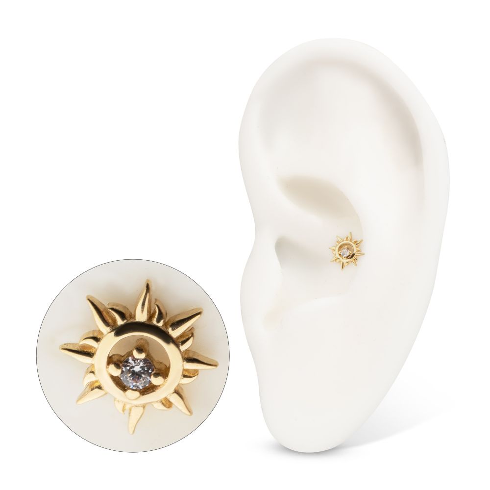 ? Whether placed in the helix, tragus, conch, or lobe, this radiant piece adds warmth, sparkle, and sophistication to any look.
