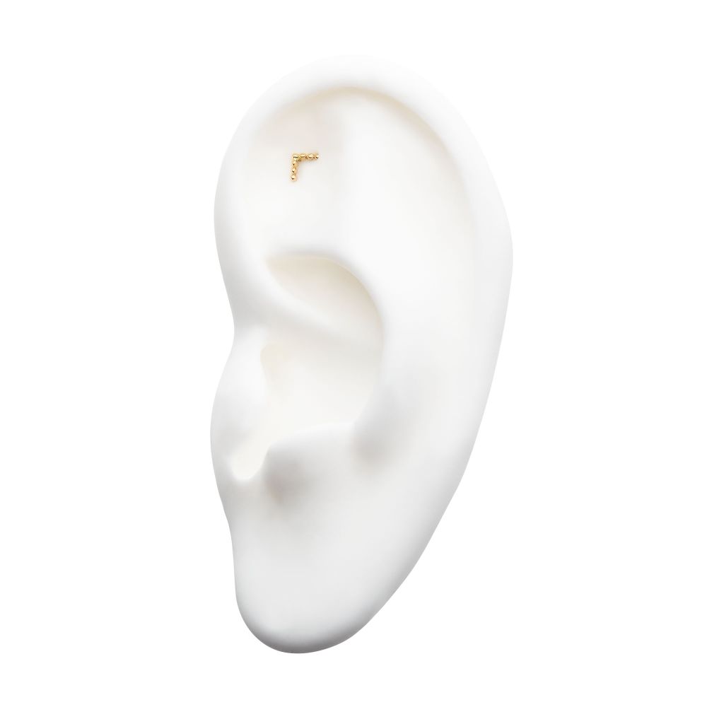 14Kt Yellow Gold Threadless with 7 Beads Triangle Top is made of solid 14kt nickel-free Gold with durable 316LVM ASTM F-138 Implant Grade Steel Pin designed to be practical and easy to use. Fits all sizes of pins and bases in our threadless body jewelry line. Pin Size: 0.45mm x 4.7mm.