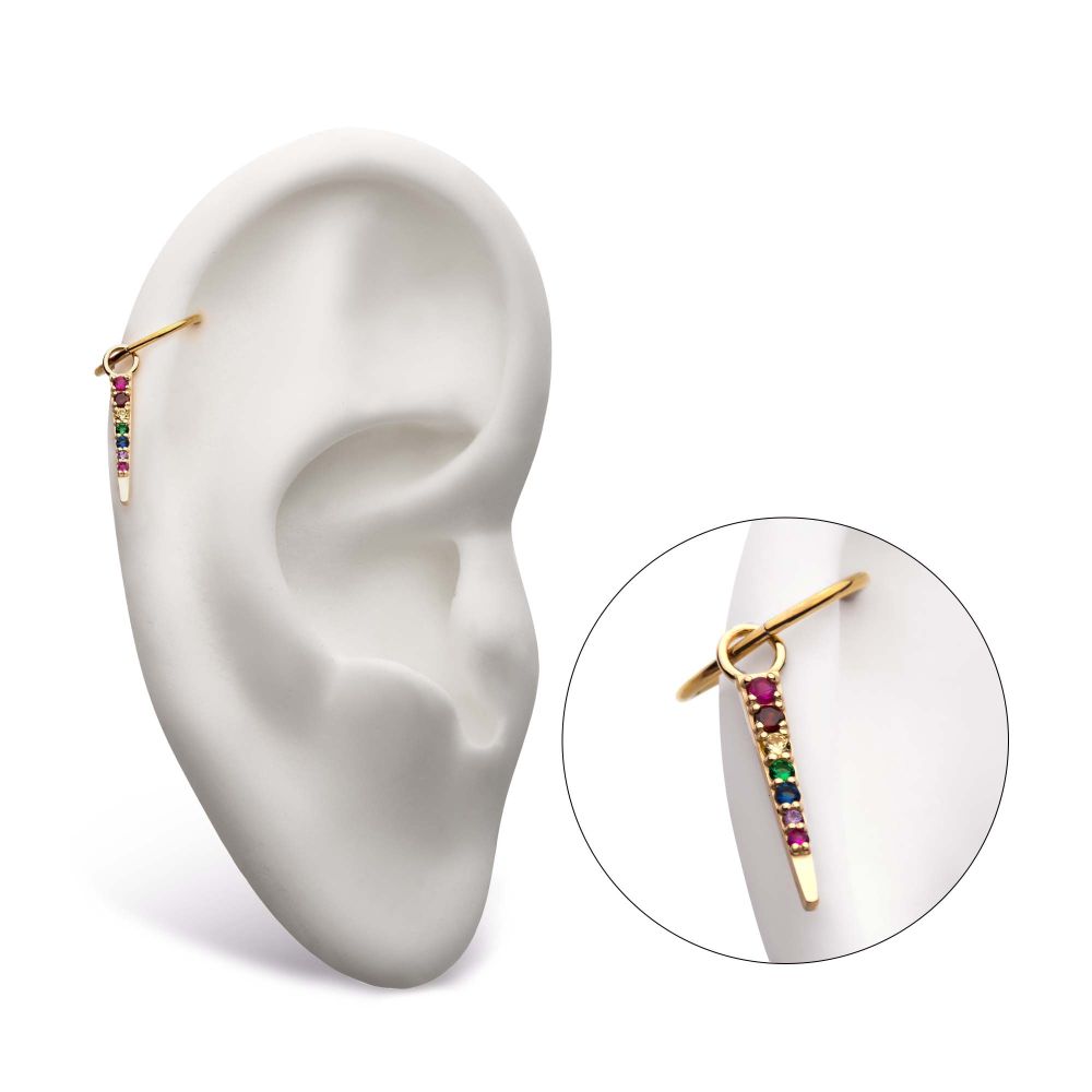 14Kt Yellow Gold Triangle with Prong Set 7 CZ Charm. Dimension: 2.2mm (L) x 13mm (W).