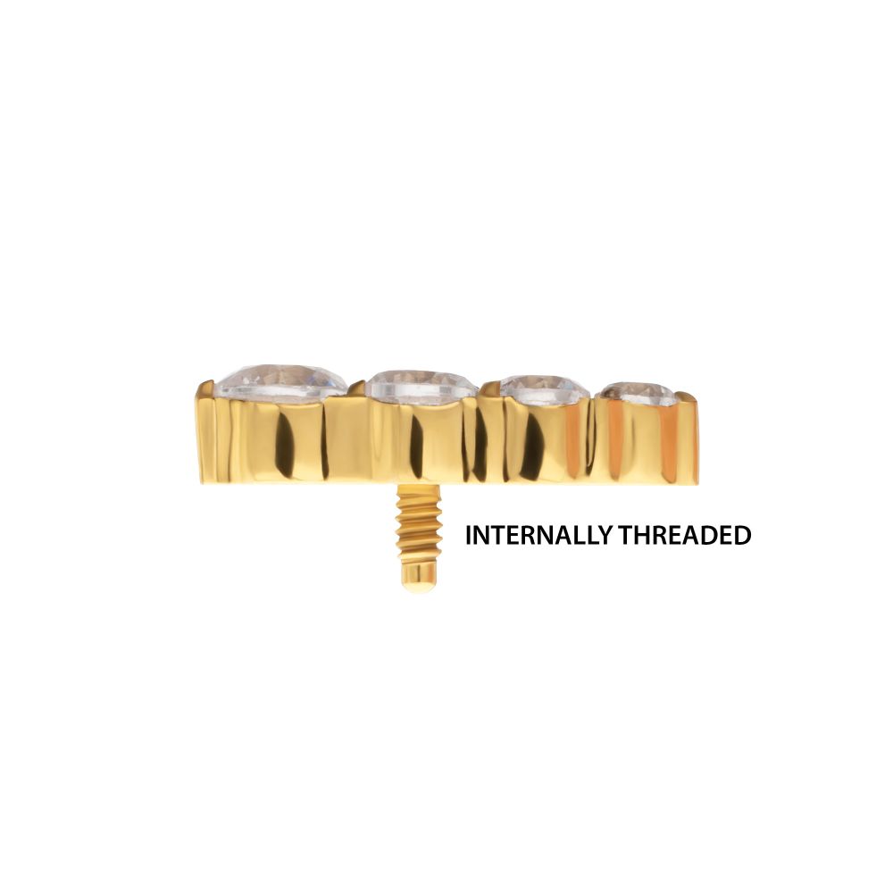 24Kt Gold PVD Titanium Internally Threaded 4-Cluster Staggered Prong Set CZ Gem Top (Left Ear)