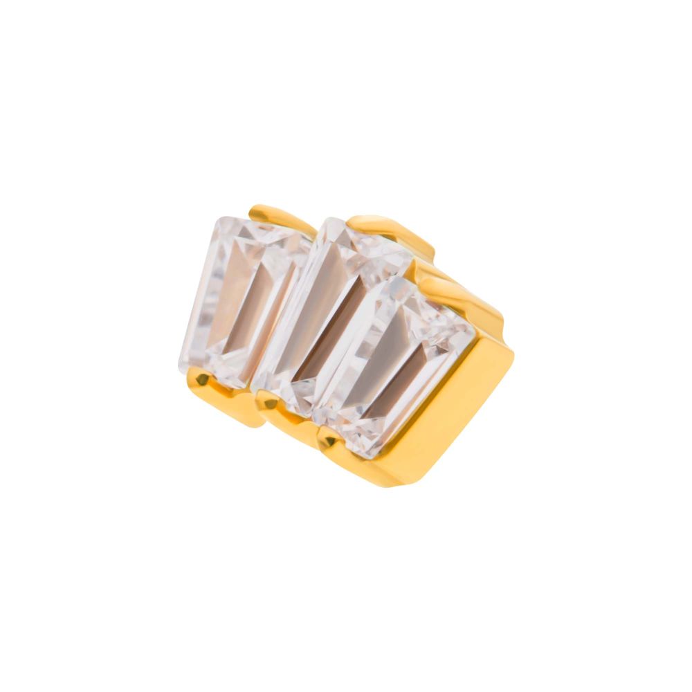 24Kt Gold PVD Titanium Internally Threaded Prong Set Baguette CZ 3-Cluster Top. Manufactured from High Polish Implant Grade Titanium (Ti-6AL-4V-ELI ASTM F136).