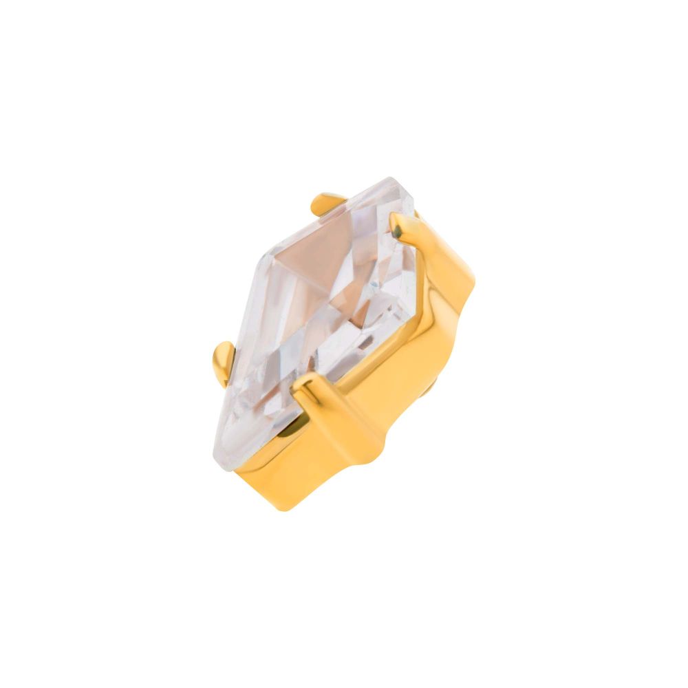 24Kt Gold PVD Titanium Internally Threaded Prong Set Kite Shaped CZ Top