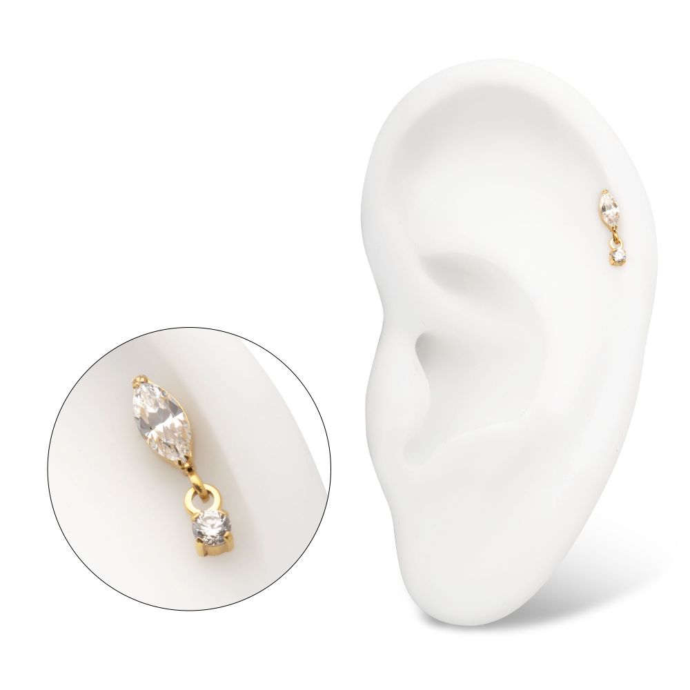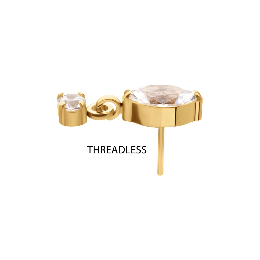 24KT Gold PVD Titanium Threadless Marquise Top with Prong Set Gem Dangle