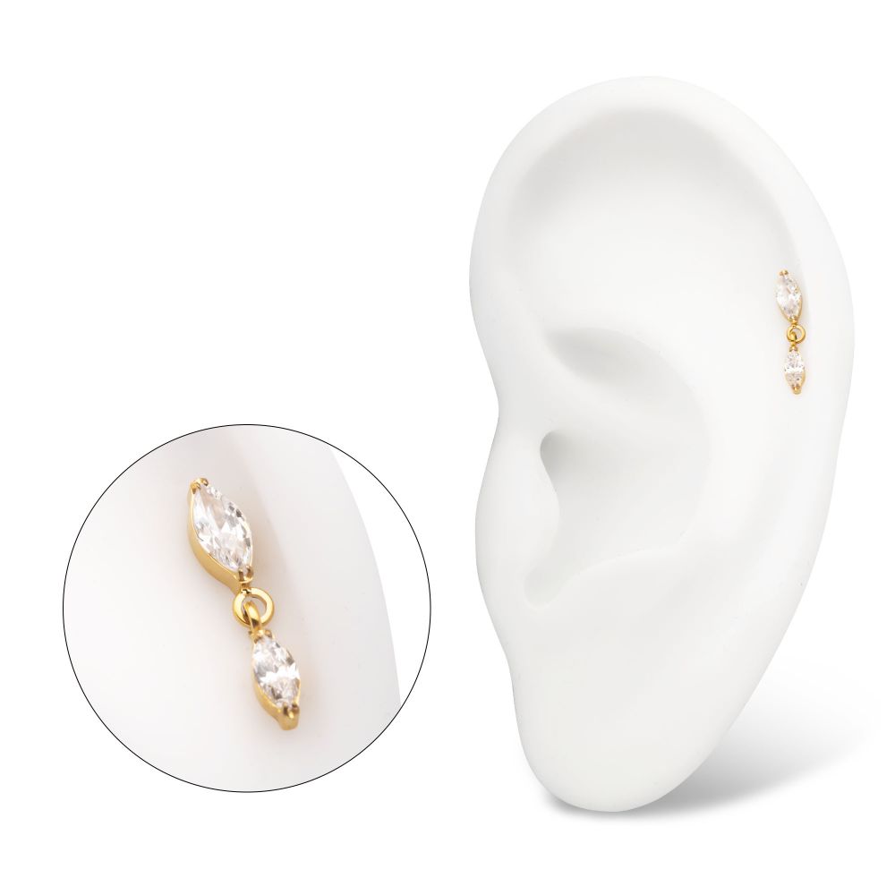 24KT Gold PVD Titanium Threadless Prong Set Double Marquise Gem Dangle Top