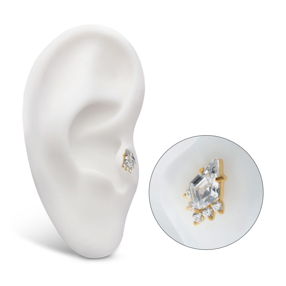 24Kt Gold PVD Titanium Threadless Prong Set Kite Shape CZ Top with 5-Cluster Round CZ