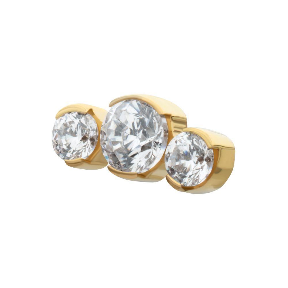 24Kt Gold PVD Titanium Threadless Semi-Bezel Set Round Gem/Opal 3-Cluster Top