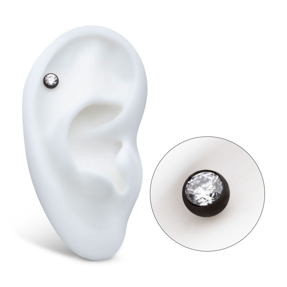 Black PVD Titanium Internally Threaded Bezel Set CZ Front Facing Top