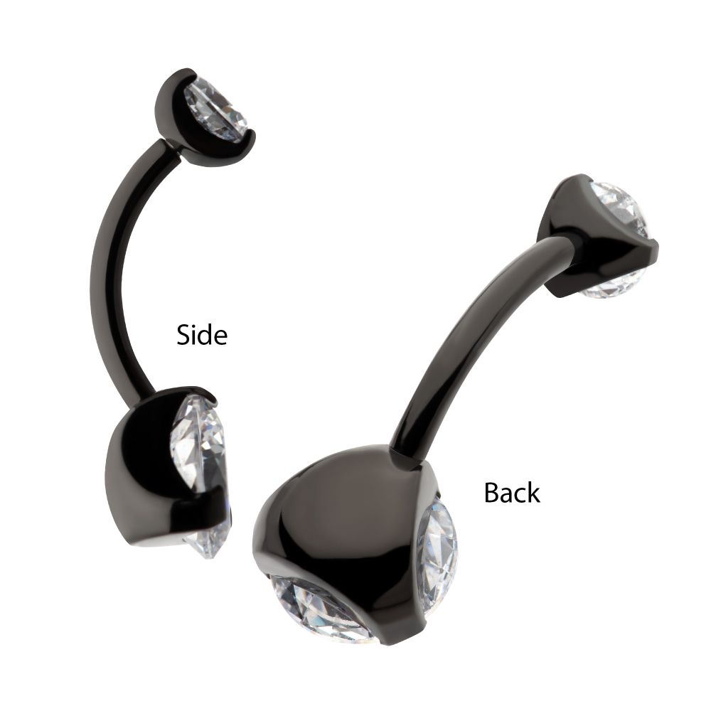 Black PVD Titanium Internally Threaded Prong Set Double CZ Fixed Bottom Navel Ring.