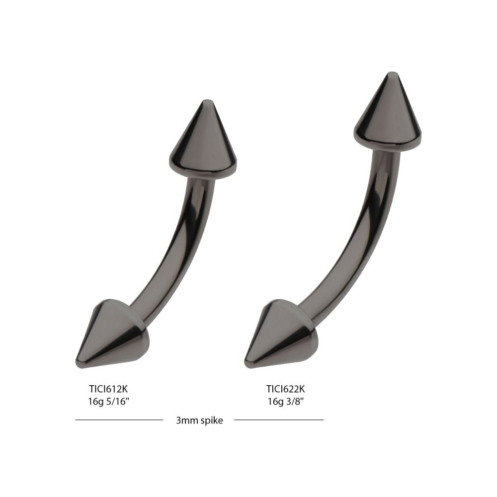 Black PVD Titanium Internally Threaded Spike End Curved Barbell