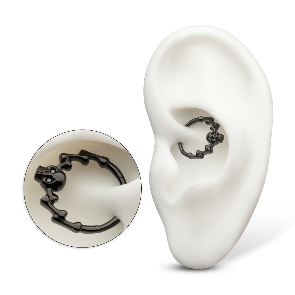 ? Make an edgy statement with Invictus Body Jewelry’s latest Titanium Skull & Bone Front Facing Hinged Segment Clickers.