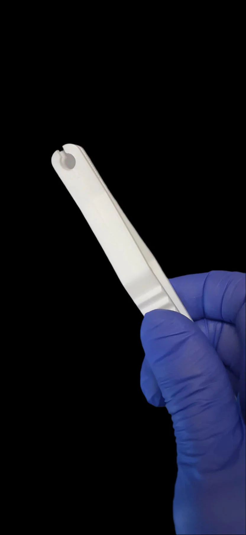 This innovative clamp is designed with a high-grade plastic that is thicker and has a self-closer feature that makes it easier to use without using rubber bands. It is ergonomically designed with slip proof grips for both your fingers and holding the skin. Many of the plastic disposable piercing clamps on the market were designed for other uses and, because of a need, brought into the piercing industry. This tool was specifically designed for our industry allowing you to get a more precise piercing every time.