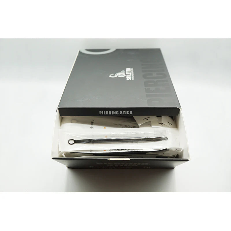 This innovative stick was designed many years ago by one of our industry leaders. It is 2 piercing loops on either side of the stick allowing you to choose the size best fitted for the piercing. The larger side can be used to hold the back of earlobes and noses, the smaller side can be used for forward helixes, rooks, and other ear piercings. This product holds the skin in its natural state, allowing for perfect straight piercings every time.
