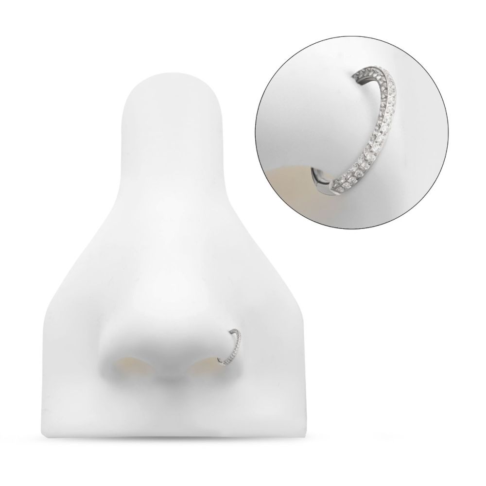 Titanium 3-Row 0.8mm Pave Gem Hinged Segment Clicker. Manufactured from High Polish Implant Grade Titanium (Ti-6AL-4V-ELI ASTM F136).