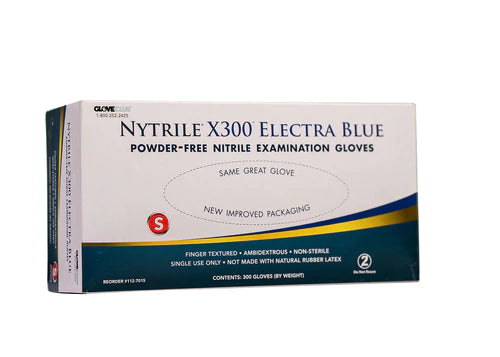 Superthin, soft nitrile glove. Conforms to the hand for a superior fit with optimal tactile sensitivity. Eco-friendly box design saves space and reduces waste. Textured fingers. Electra Blue.