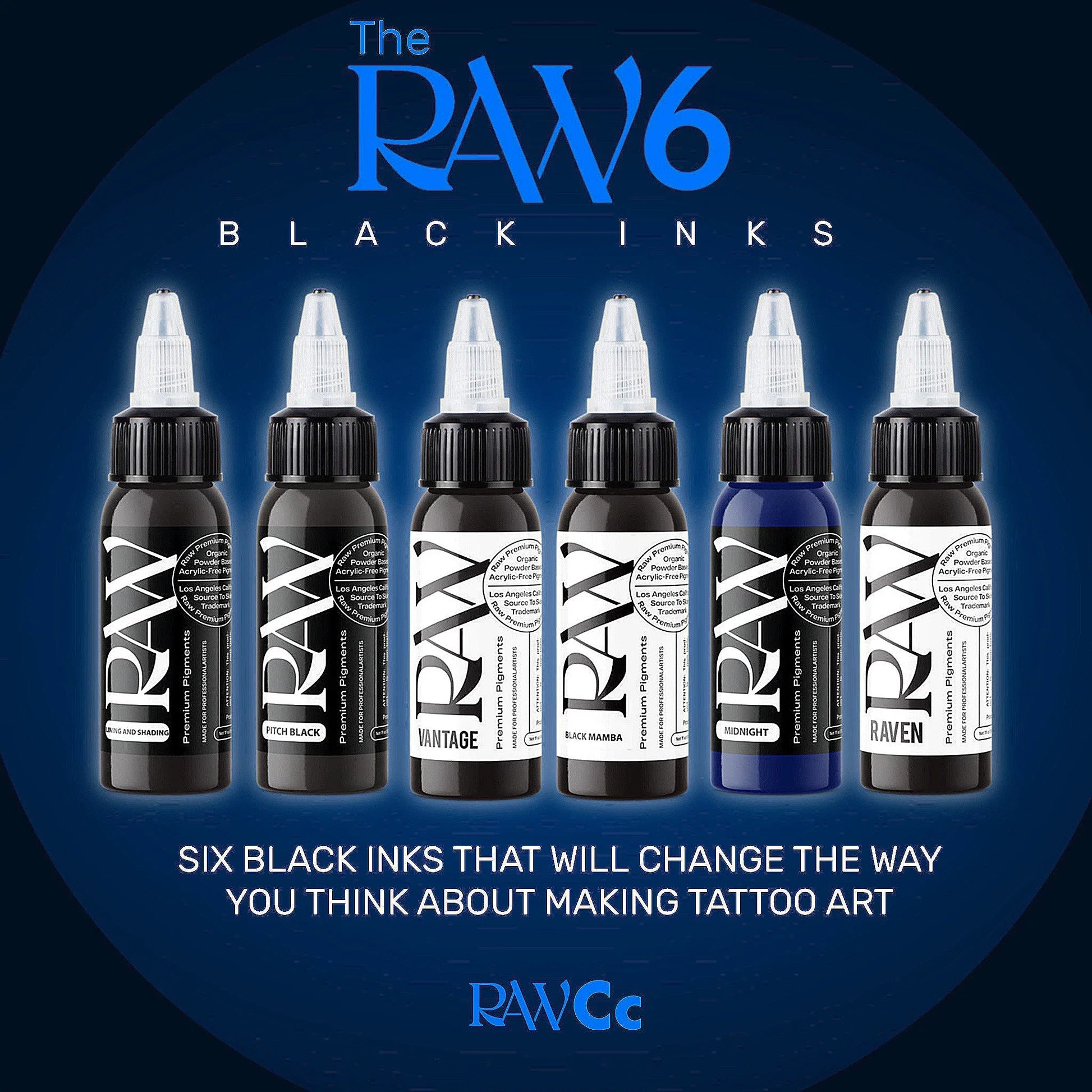 The Raw 6 Black Ink Set transforms your approach to body art with six distinct formulations designed for precision and creative depth. Each ink in this curated collection serves a specific purpose—from Shading Black's smooth dispersal for flawless drop washes and blending, to specialized blacks engineered for line work, solid fills, and fine detail. After years of relying on standard black formulas, professional artists discover that The Raw 6 unlocks new dimensions in visual impact, tonal range, and artistic control. Move beyond one-size-fits-all inking and experience how the right black ink elevates your technical execution and creative vision.