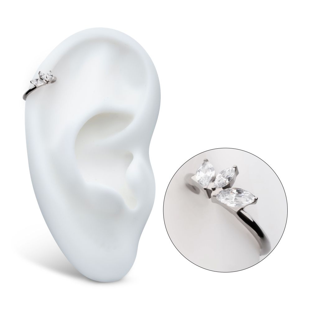 Titanium 3-Cluster Prong Set Marquise CZ Side Facing Hinged Segment Clicker. Manufactured from High Polish Implant Grade Titanium (Ti-6AL-4V-ELI ASTM F136).