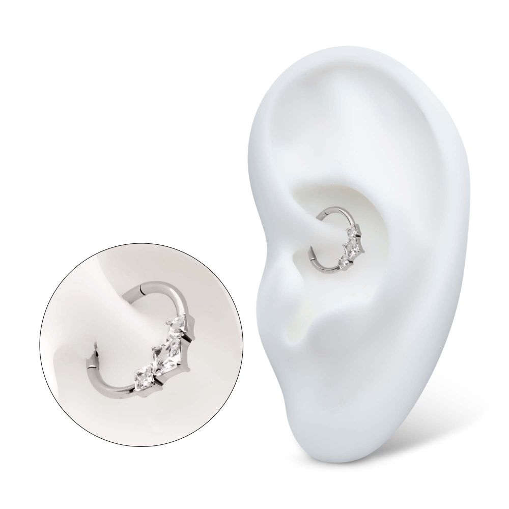 Titanium Clustered Prong Set Princess Gem Front Facing Hinged Segment Clicker