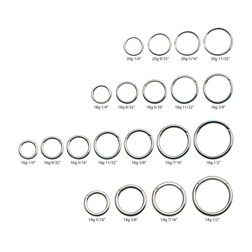 Versatile and simple, our titanium hinged segment ring is available in a variety of sizes and gauges for the perfect fit and look to complement any piercing. Easy to open and close, these are something every shop should have on hand and ready to go.