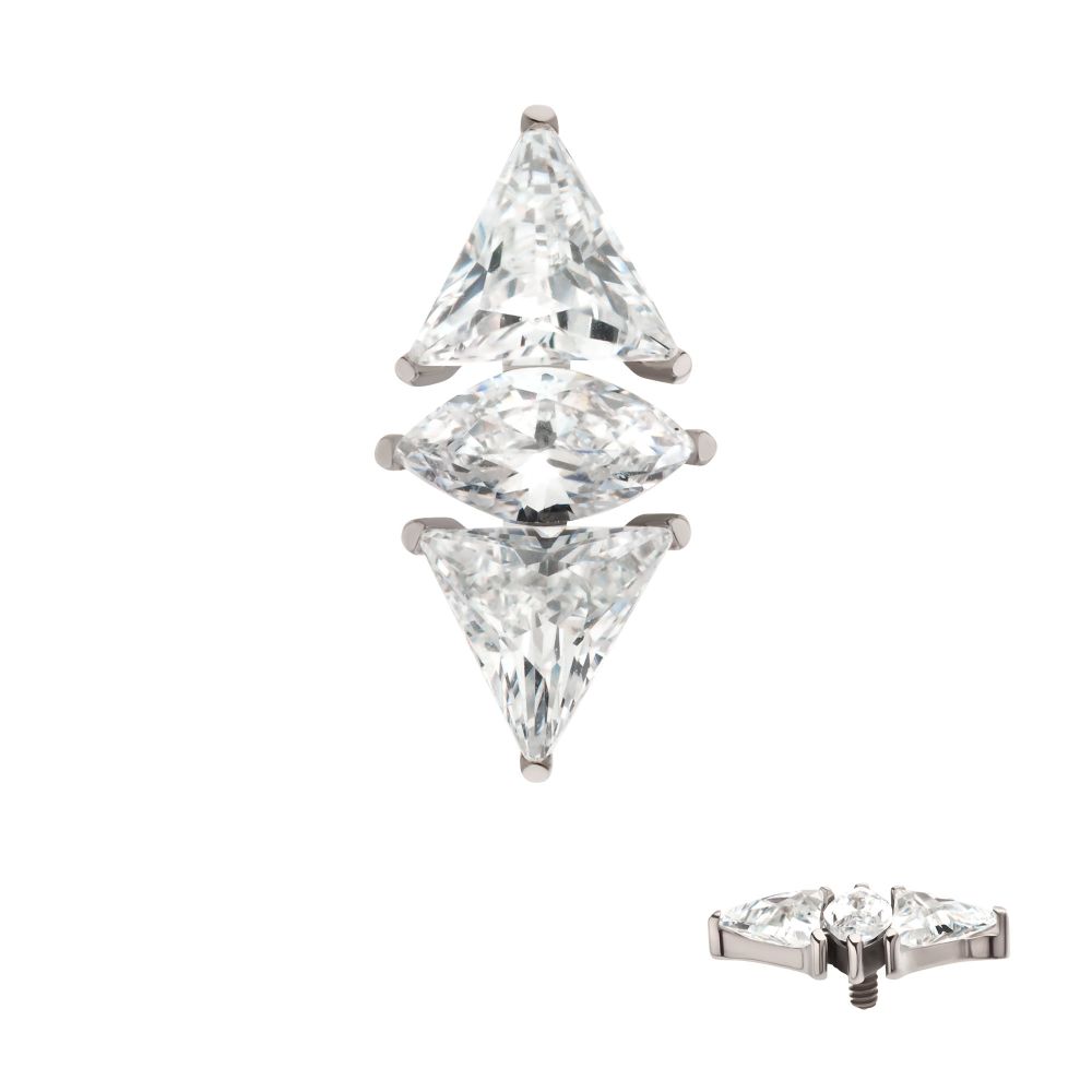 Titanium Internally Threaded 3 Cluster Top with Prong Set Marquise & Triangle CZ. Manufactured from High Polish Implant Grade Titanium (Ti-6AL-4V-ELI ASTM F136).