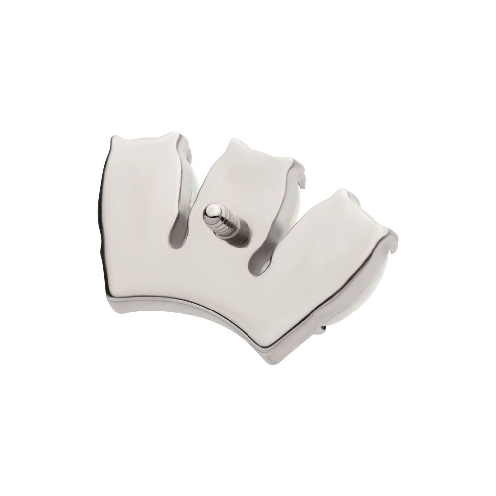 Titanium Internally Threaded 4-Prong 3 Oval White Opal with 5 Round Clear CZ Cluster Top. Manufactured from High Polish Implant Grade Titanium (Ti-6AL-4V-ELI ASTM F136).