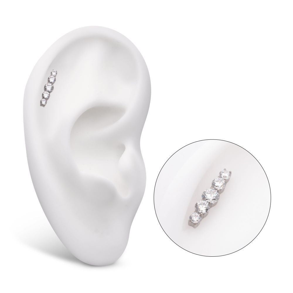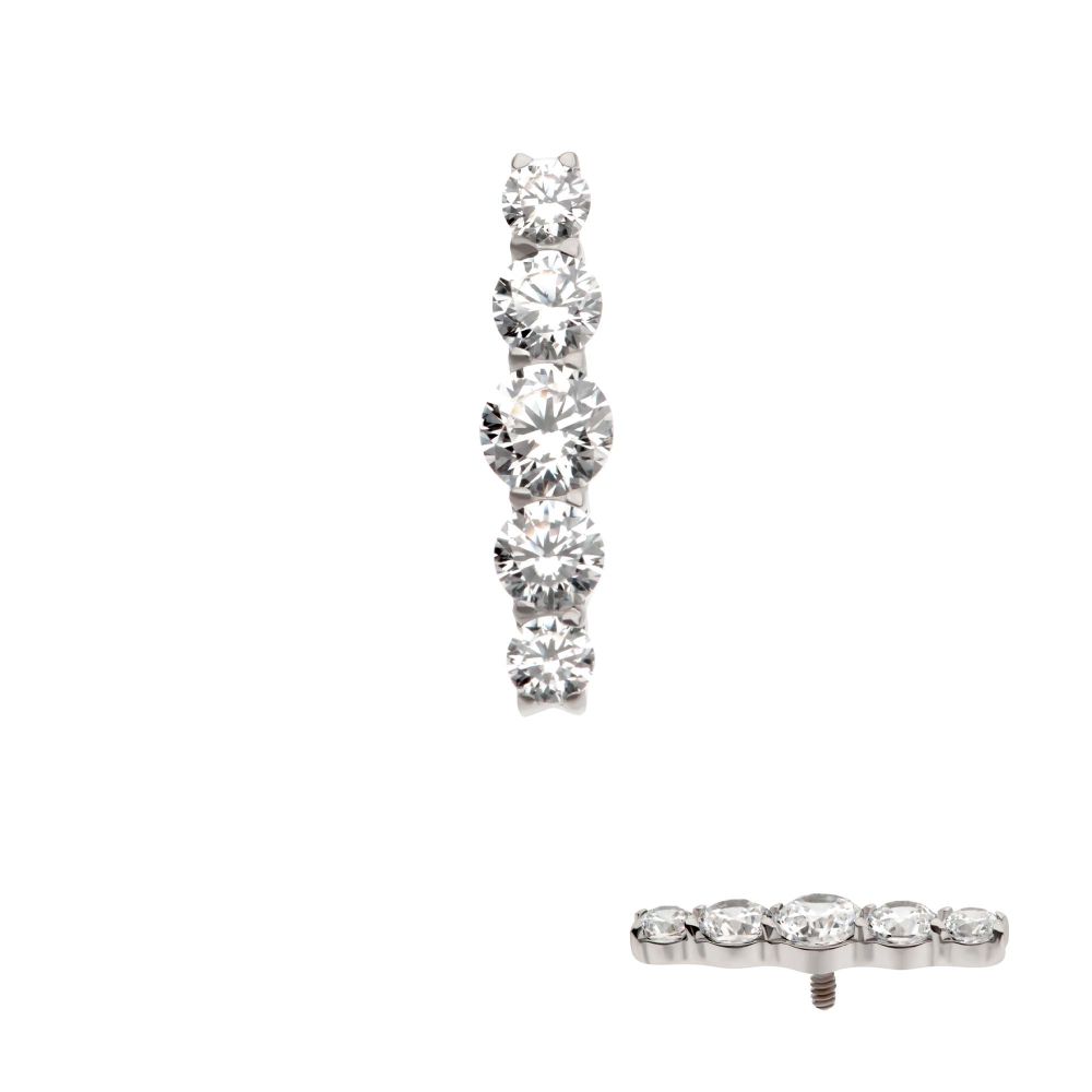 Titanium Internally Threaded 5-Cluster Prong Set Round CZ Gem Bar Top. Manufactured from High Polish Implant Grade Titanium (Ti-6AL-4V-ELI ASTM F136).