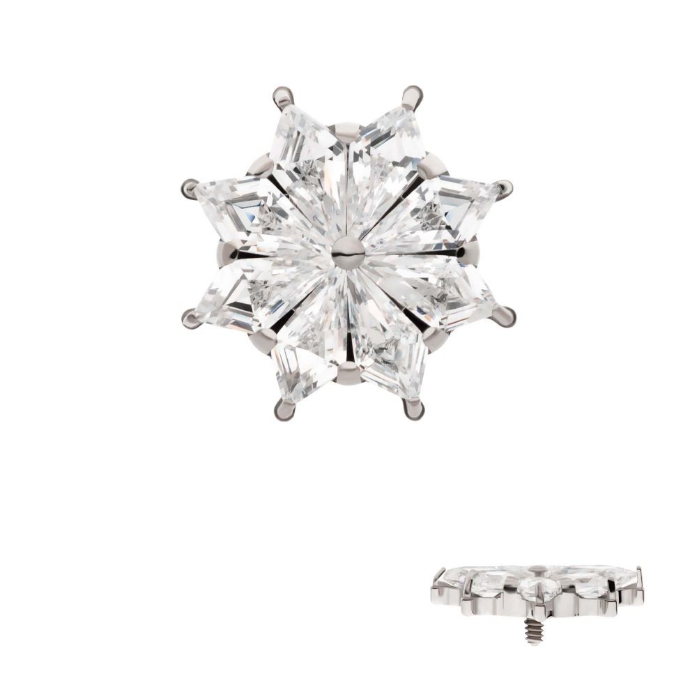 Titanium Internally Threaded 8-Cluster Prong Set Kite Shape CZ Flower Top. Manufactured from High Polish Implant Grade Titanium (Ti-6AL-4V-ELI ASTM F136).