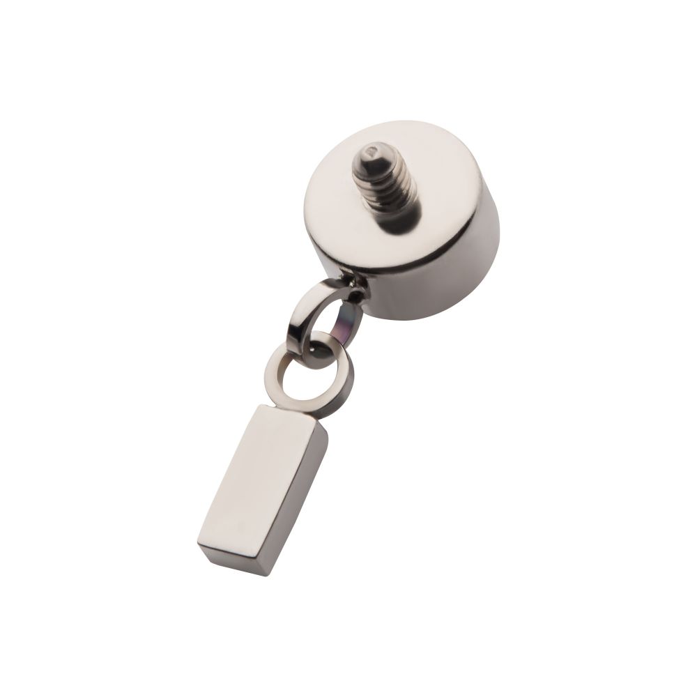 Titanium Internally Threaded Bezel Set CZ with Dangling Bar Top. Manufactured from High Polish Implant Grade Titanium (Ti-6AL-4V-ELI ASTM F136).