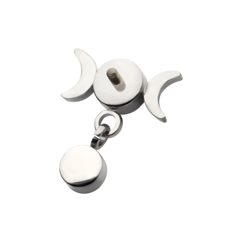 Titanium Internally Threaded Dangle Bezel Round CZ Triple Moon Phase Gem Top . Manufactured from High Polish Implant Grade Titanium (Ti-6AL-4V-ELI ASTM F136).
